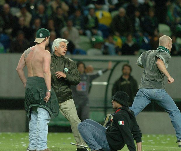 Infelizmente, casos destes sucedem-se regularmente. Quem percorre o futebol dos escalões inferiores, distritais incluídos, sabe que se arrisca a ver esta cena. Espera-se, porém, que, primeiro, a segurança funcione num dérbi da dimensão daquele que opôs Benfica e Sporting no sábado; também, que os adeptos se saibam comportar; ainda, que a disciplina cumpra o regulamentado, mas já como complemento de uma primeira reação de quem é verdadeiramente lesado: a própria equipa e os outros adeptos.