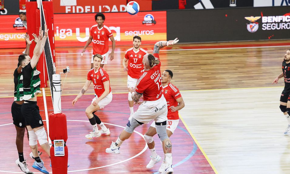 Com Banderó a liderar - fortíssimo no ataque à rede - as águias acertaram no bloco e estiveram sempre por cima. Nem uma reação tardia dos homens de verde e branco – que conseguiram empatar o set a 22 – impediu a vitória encarnada (25-22).