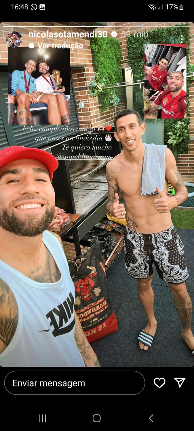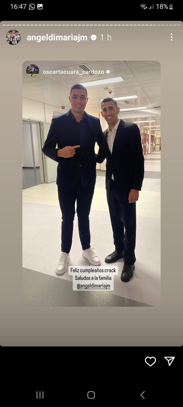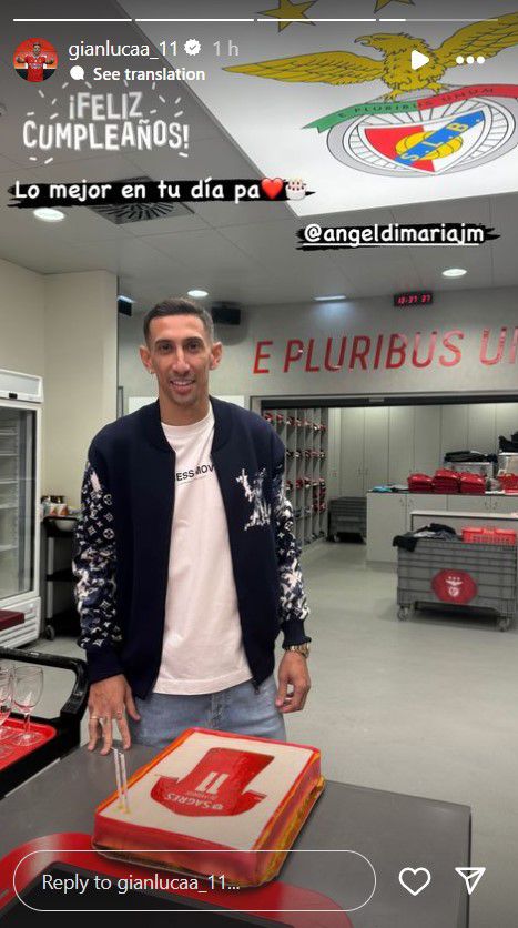 Benfica, Otamendi, Prestianni, Rollheiser, compatriotas da Luz, e vários outros companheiros de equipa fizeram questão de felicitar Di María das mais variadas formas, simplesmente por imagem ou com mensagens.