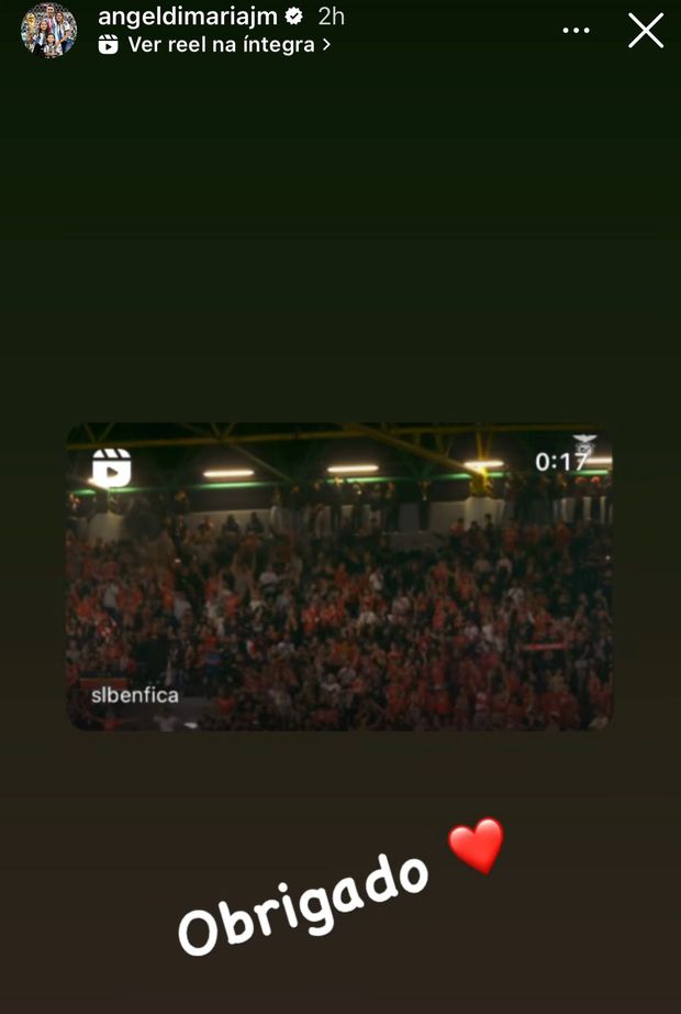 Ángel Di María agradeceu o apoio dos adeptos do Benfica em Alvalade na derrota diante do Sporting, por 1-2, na 28.ª jornada da Liga.
