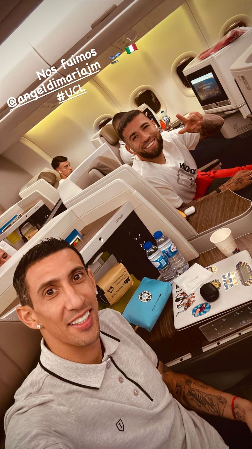 Os dois argentinos, aliás, foram os primeiros a sair do autocarro e a passar pela zona de embarque do aeroporto de Lisboa. Já no avião, Otamendi publicou a fotografia com a legenda «partimos» e a hashtag com a referência da Liga dos Campeões, além de emojis de um avião a partir e a bandeira de Itália.