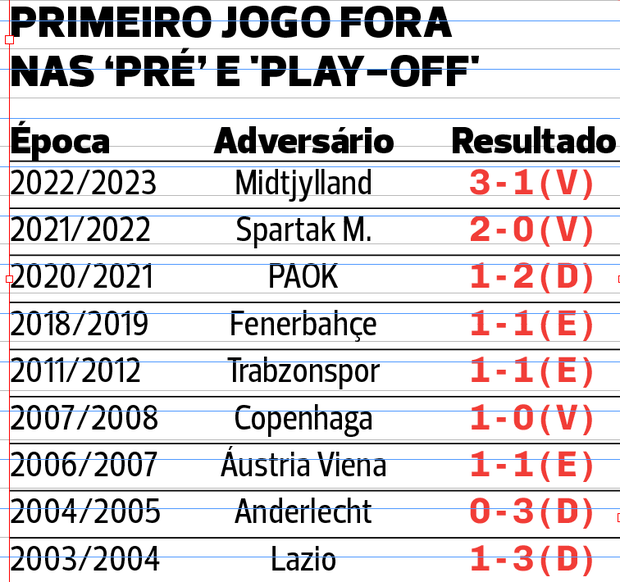 O Benfica teve nove épocas, neste século, em que teve de passar por pré-eliminatórias e 'play-offs'. E que aconteceu no primeiro jogo fora de casa (como amanhã em Nice) de cada uma delas: três vitórias, três empates, três derrotas. Tudo muito equilibrado na estreia fora de portas, mas bem mais interessante no ‘sim ou não’ a seguir, mais tarde, para a fase de grupos. Por seis vezes chegou à fase decisiva e apenas em três ficou de fora (Lazio, Anderlecht e PAOK). Esta é a primeira vez que o Benfica joga com franceses nesta fase da prova.