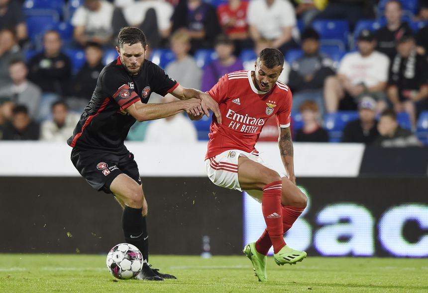Diogo Gonçalves no Midtjylland-Benfica de 2022 (ANDRÉ ALVES)