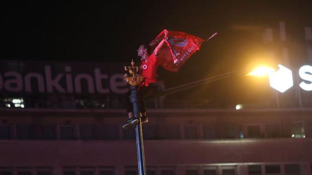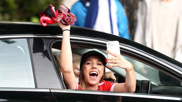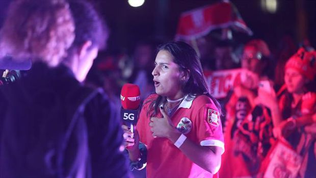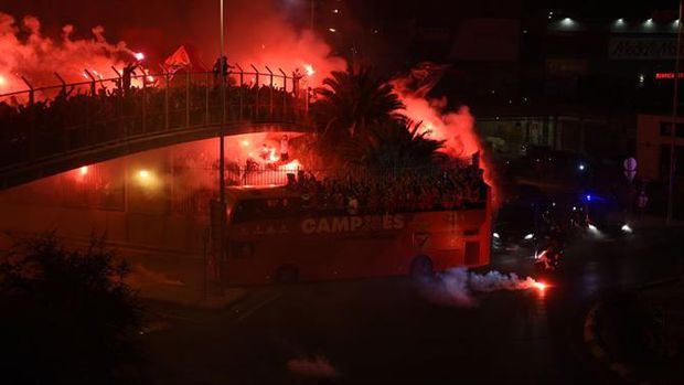 00h08: Jogadores assoberbados por um autêntico mar vermelho nas ruas.