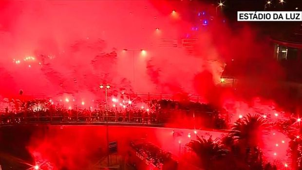 00h31: O vídeo da saída do Benfica do Estádio da Luz, com uma impressionante 'tochada': para ver AQUI