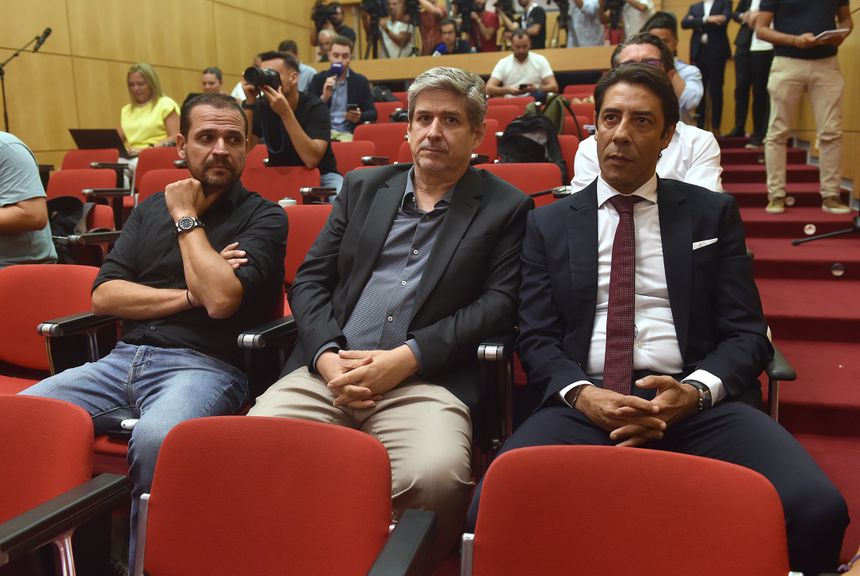 Rui Pedro Braz e Lourenço Coelho ao lado do presidente do Benfica, Rui Costa (foto Miguel Nunes)