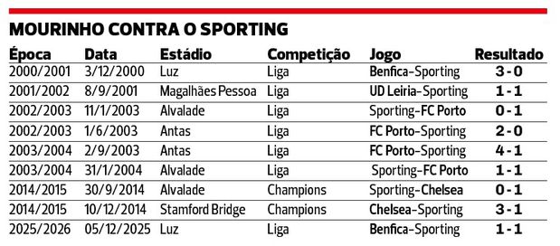 Mourinho rumou de Leiria para o Porto. E, como timoneiro dos azuis e brancos, encontraria quatro vezes o Sporting — três vitórias e um empate.