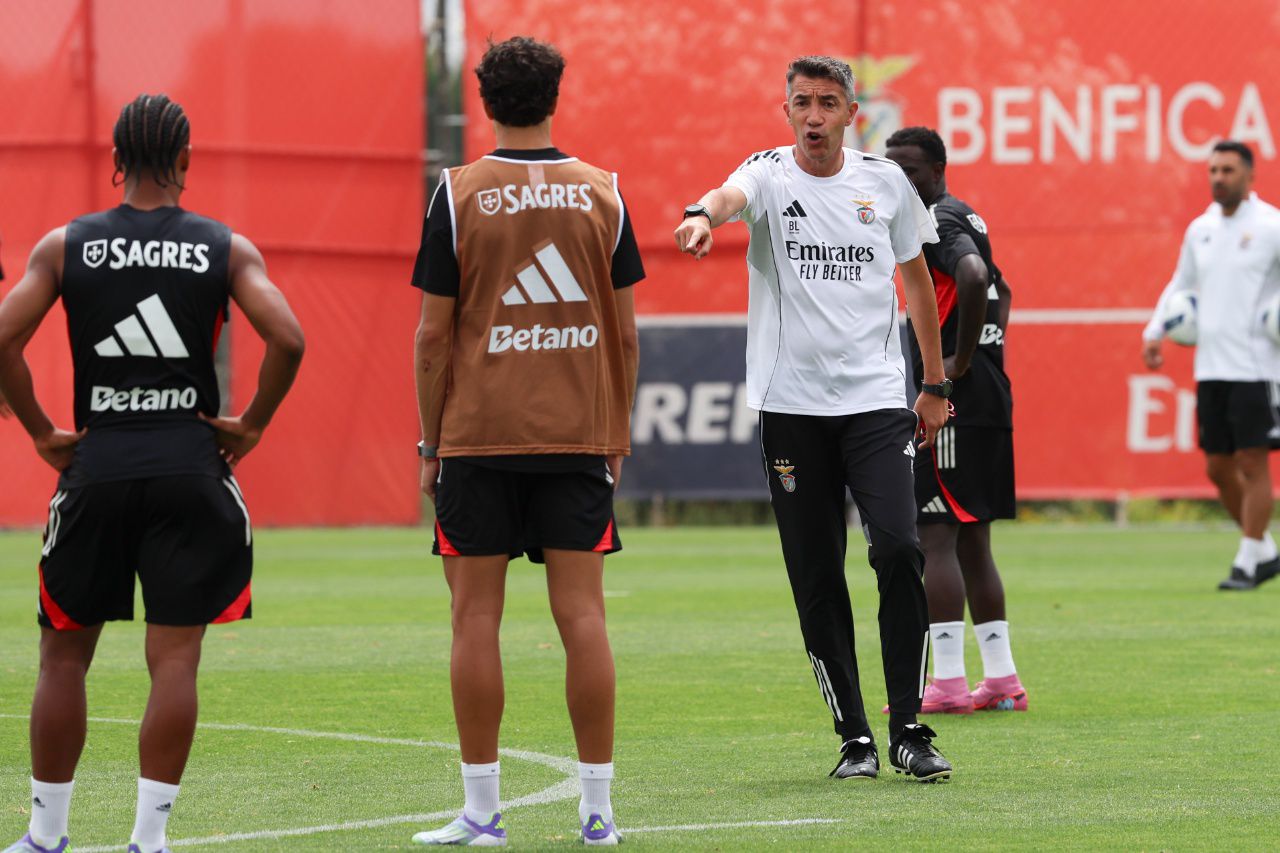 O plantel do Benfica realizou esta sexta-feira mais um treino. Nas fotos partilhadas pelo clube é possível ver Bruno Lage muito perto dos jogadores e o plantel aplicado, com foco na intensidade.