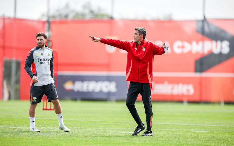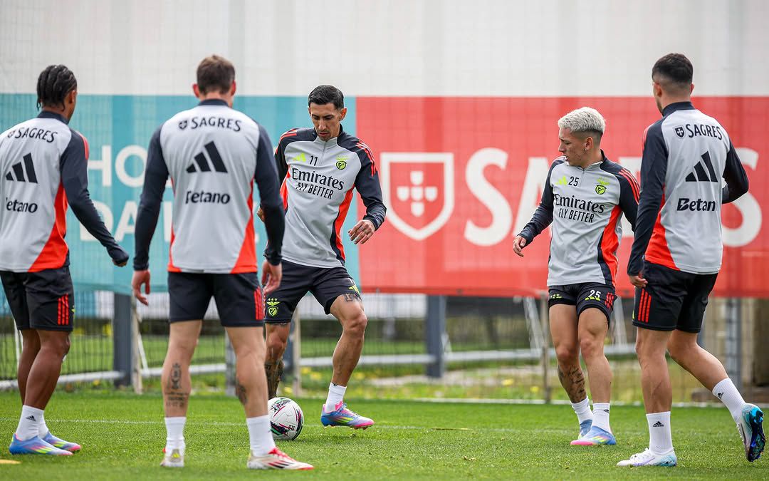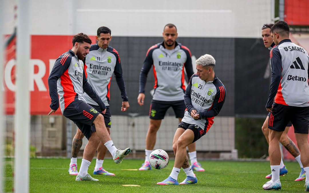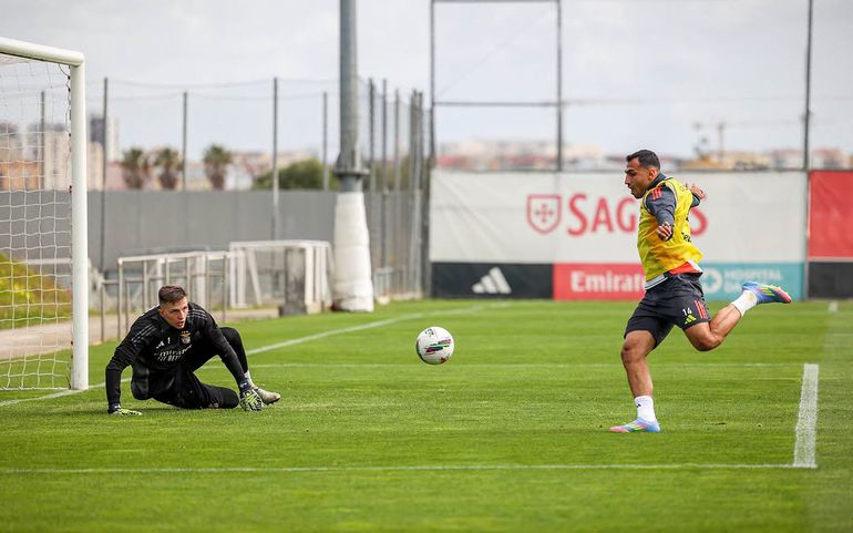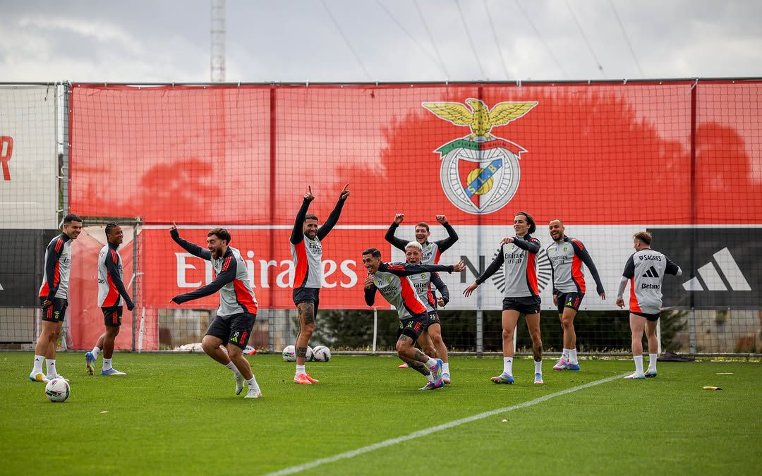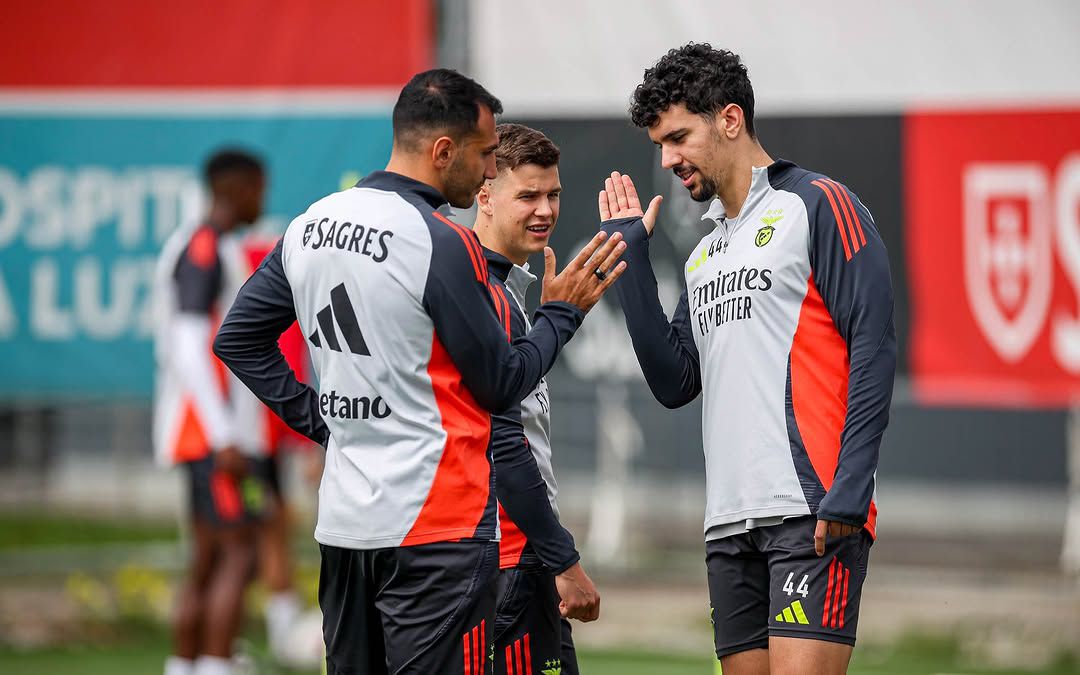Tratou-se da última sessão antes da viagem para o FC Porto e, nas imagens partilhadas pelos encarnados, é possível ver Tomás Araújo a cumprimentar Pavlidis, dois prováveis titulares no clássico.