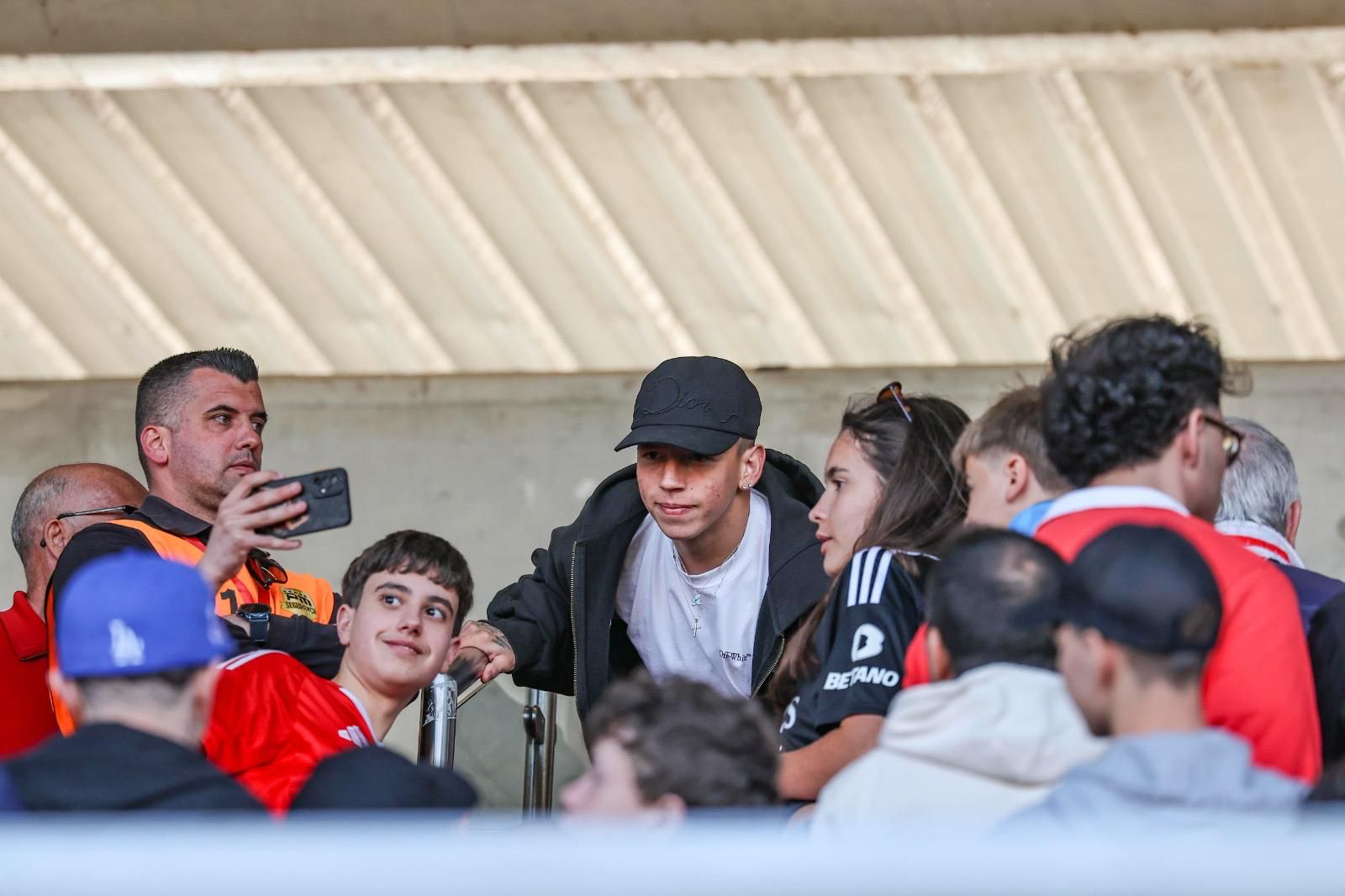 O guarda-redes Samuel Soares, o defesa-central Tomás Araújo, a recuperar de lesão e indisponível para o jogo de amanhã com o Nacional, o médio Manu Silva e o avançado Prestianni, que teve de posar para a fotografia, estiveram nas bancadas do campo n.º 1 do Seixal.