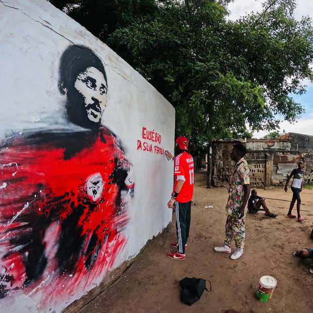 «Neste pequeno campo de futebol sem relvado e sem redes, mas com muita vida, encontra-se a minha nova pintura. Representa o menino do bairro. Aquele que cresceu na Mafalala e partiu muito cedo para Lisboa. Foi na capital portuguesa que o Pantera Negra se afirmou, permanecendo 15 anos de águia ao peito e o número 10 nas costas. Foi ao visitar o Museu Mafalala que soube que ele era daqui, deste bairro de Maputo. Imediatamente propus ao museu oferecer-lhes uma pintura e dessa ideia nasceu o projeto de o pintar em grande!», partilhou o artista na sua conta na rede social Instagram.