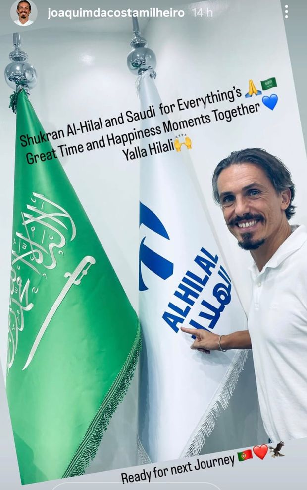 Na mensagem de despedida do Al Hilal, Joaquim Milheiro escreveu também (em inglês) que está «preparado para a próxima etapa», e colou uma bandeira portuguesa, um coração e uma águia à frase. Em breve será confirmado como novo diretor técnico da formação do Benfica.