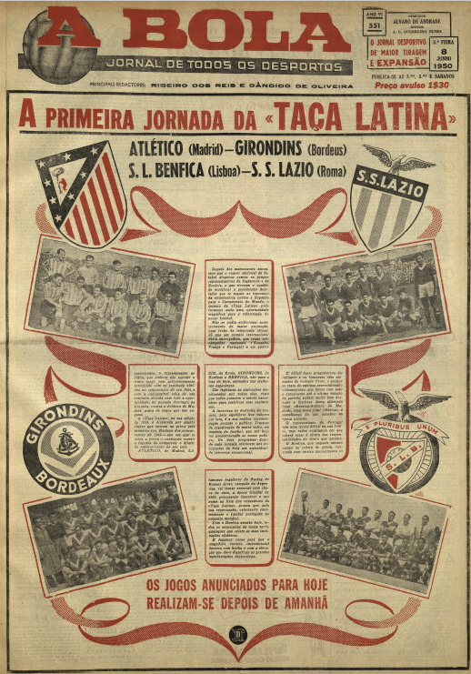 «No ano passado, o nosso representante na prova foi o Sporting, cujo comportamento na final, contra o Barcelona, campeão de Espanha, foi brilhantíssimo. A representação portuguesa está, desta vez, confiada ao Benfica. Chegou a recear-se que o popular clube lisboeta não estivesse nesta altura em condições de acautelar devidamente essa representação, porque na fase final de um campeonato muito extenso teve umas jornadas menos convincentes, não obstante a conquista de titulo, pela larga margem de seis pontos de diferença sobre o 2.º classificado, ter sido concludente e absolutamente merecida.»