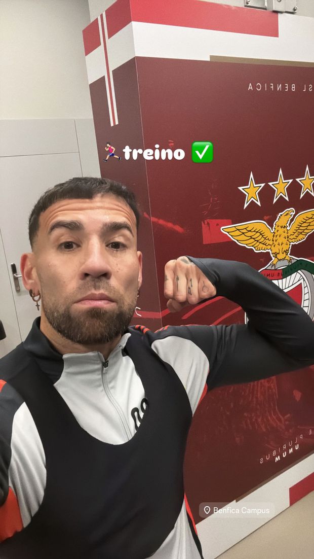 Nicolás Otamendi treinou-se esta tarde no Seixal depois de voltar da Argentina, onde esteve para festejar o 15.º aniversário da filha, autorizado pelo Benfica.