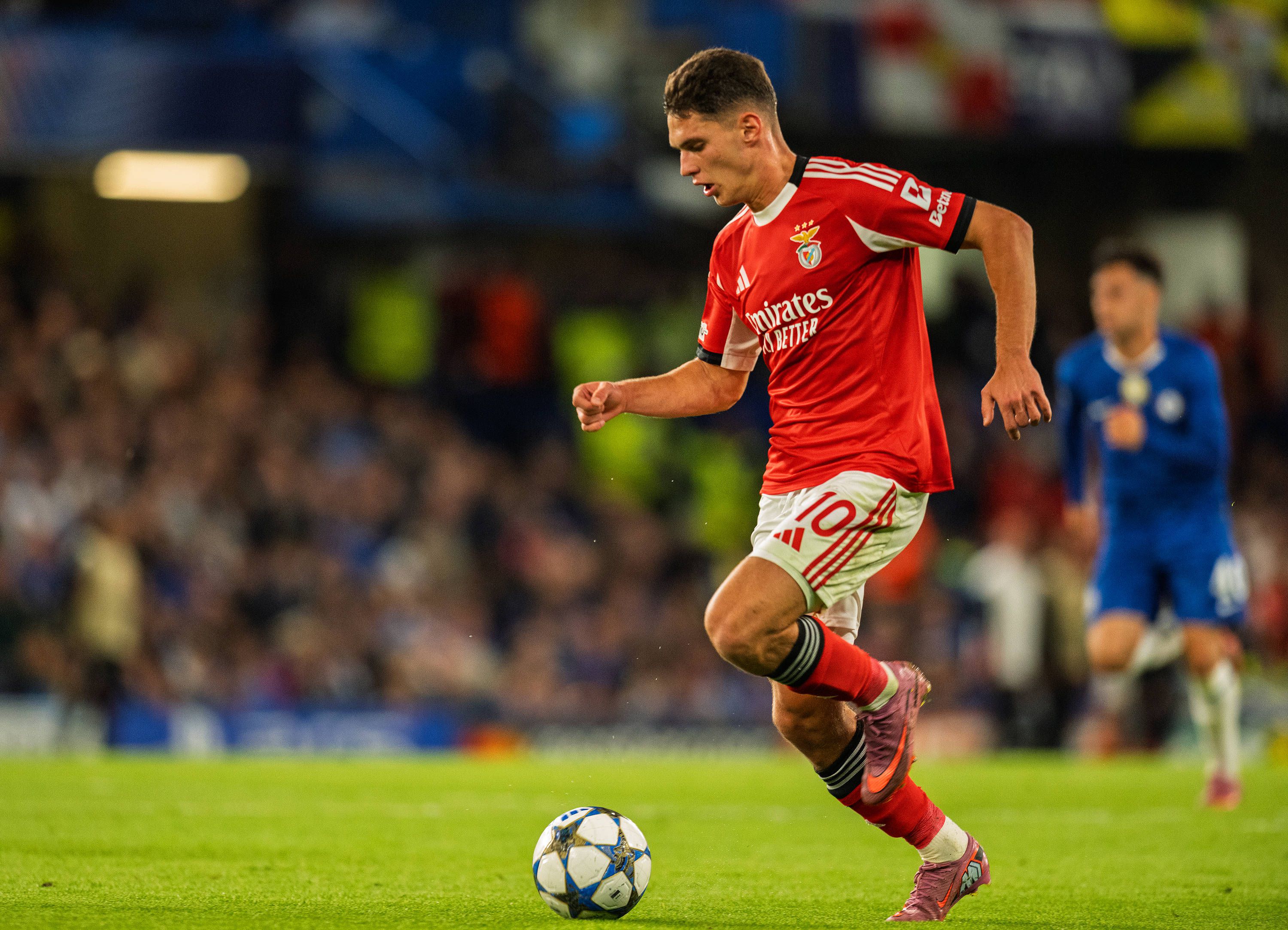 O Benfica entrou em campo concentrado, muito arrumadinho do ponto de vista tático, com algumas nuances que o tornaram mais coeso e esclarecido. No que pareceu ser um 4x3x3 a atacar, Sudakov foi mais ala esquerda do que número 10, com Aursnes a fechar por dentro e Dahl a ter menor liberdade para se lançar no corredor — nem podia ser de outra forma, pois o defesa sueco bateu de frente com a qualidade do internacional português Pedro Neto. Richard Ríos fechou a zona interior pela direita, com atenção especial à movimentação de Enzo Fernández, que tentou sempre pegar na batuta para colocar o Chelsea a tocar música mais melodiosa.