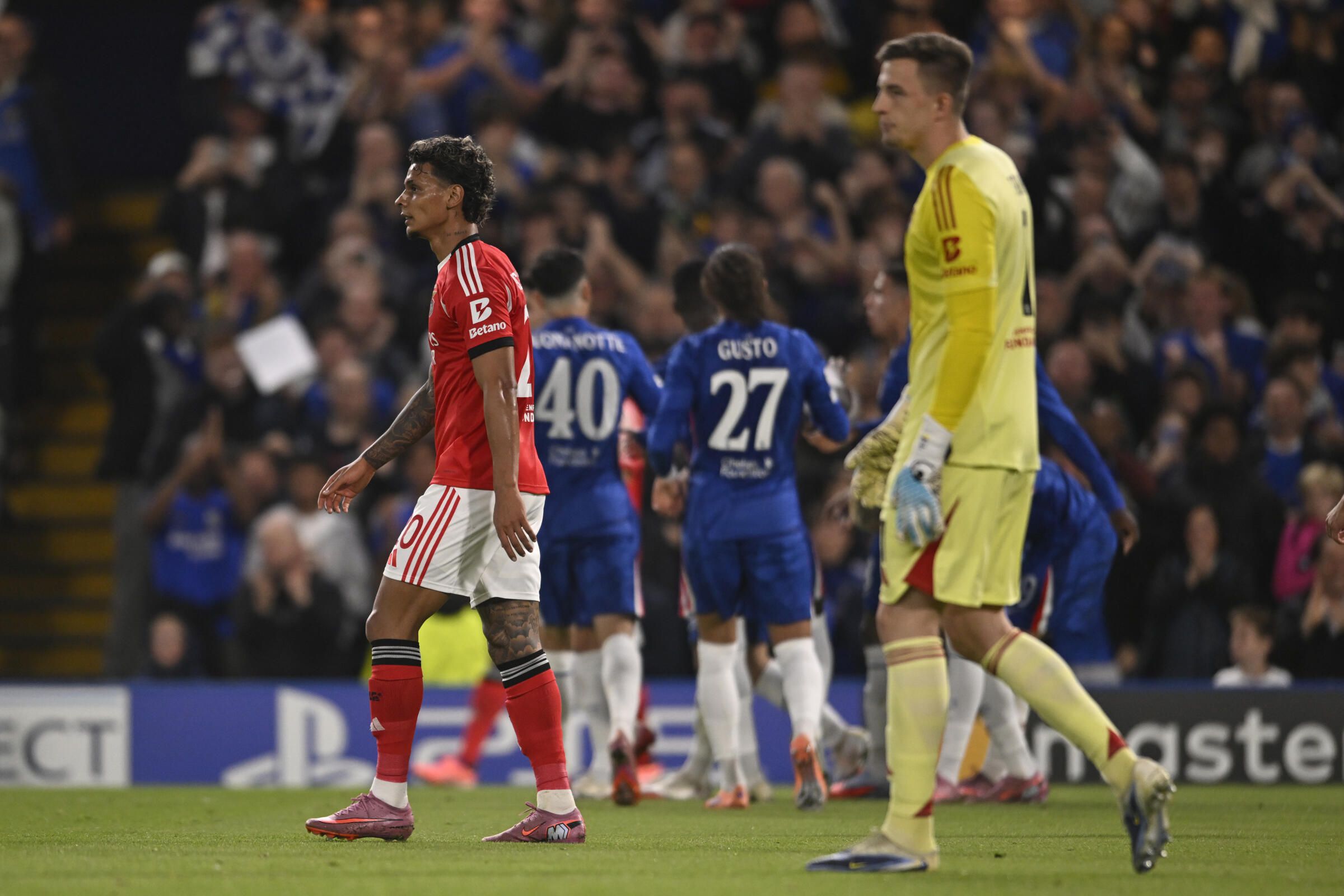 Um passe desastrado e em zona proibida de António Silva, aos 4’, permitiu a Enzo rematar com muito perigo. Mas até na asneira as equipas se iam aproximando, porque Cucurella também fez um mau passe que acabaria por resultar em remate de Lukebakio ao poste, depois de o guarda-redes desviar a bola. Os primeiros 45 minutos mostraram duas equipas a respeitarem-se, com oportunidades de golo para os dois lados. Apenas o autogolo de Richard Ríos não estava nos planos, minutos depois do colombiano ter desperdiçado boa chance para marcar golo para as águias.
