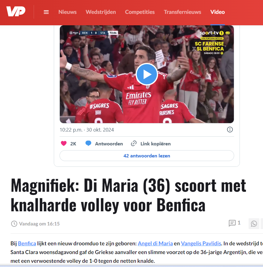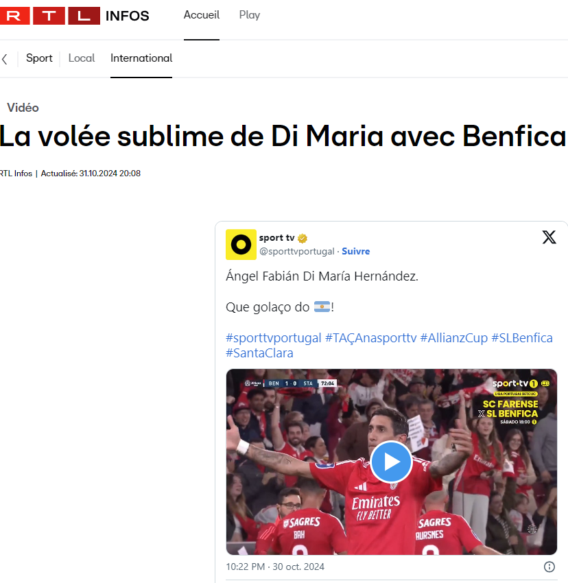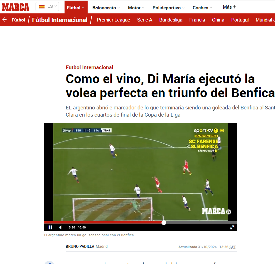Não é um lance para Prémio Puskas, mas é daqueles que adoçam o olhar e marcam um jogador. Di María, aos 36 anos, está longe de ser um jovem ou um desconhecido, mas de tempos a tempos saber-lhe-á bem recordar ao Mundo que ainda está em atividade, que ainda joga ao mais alto nível e que ainda é capaz de fazer golos espetaculares em momentos importantes. Era a Taça da Liga, mas era a valer.
