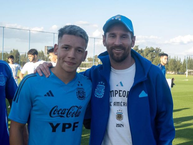 Extremo das águias, ao serviço dos sub-20 da Argentina, posou ao lado do '10'