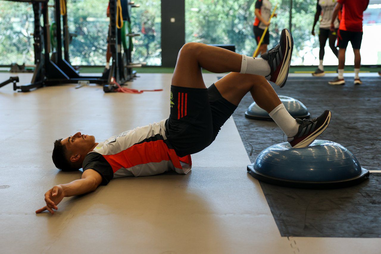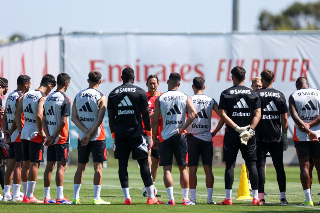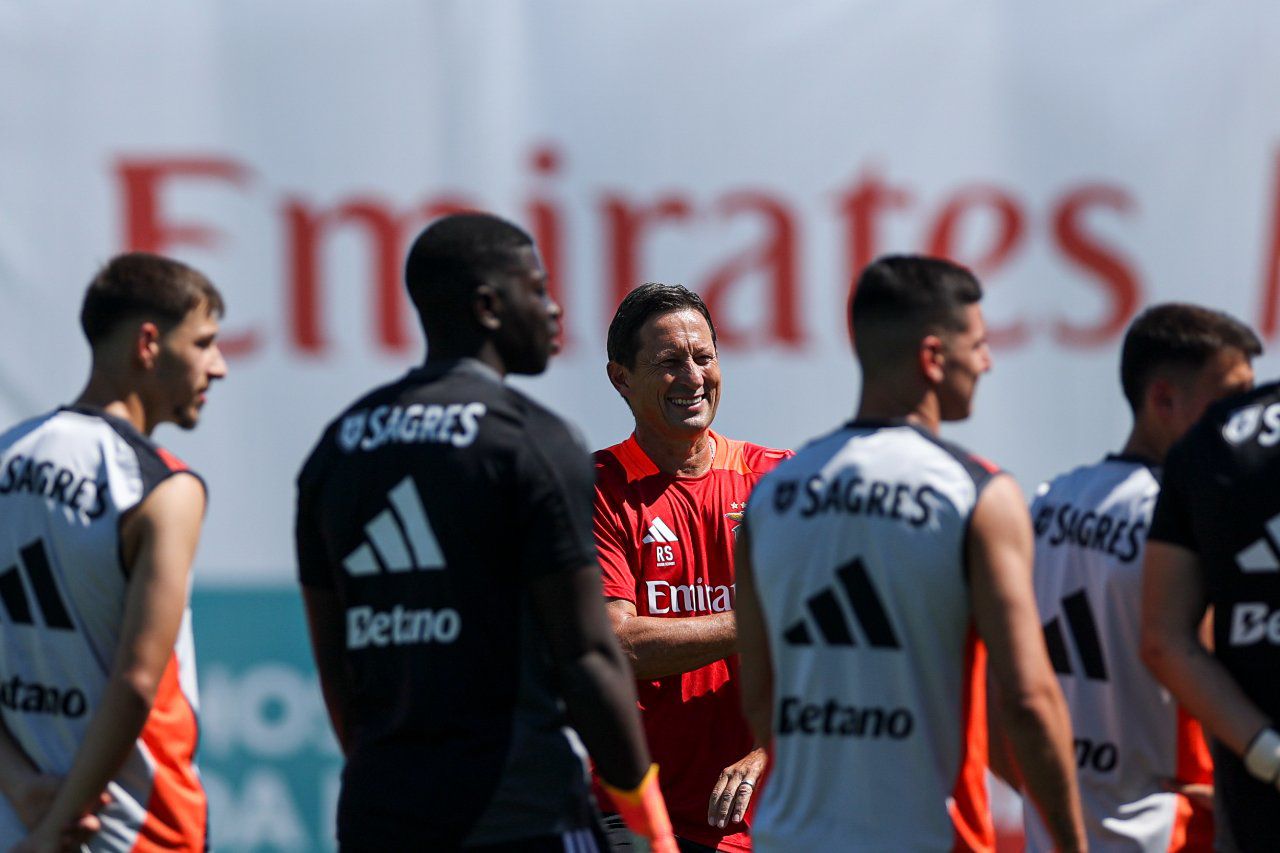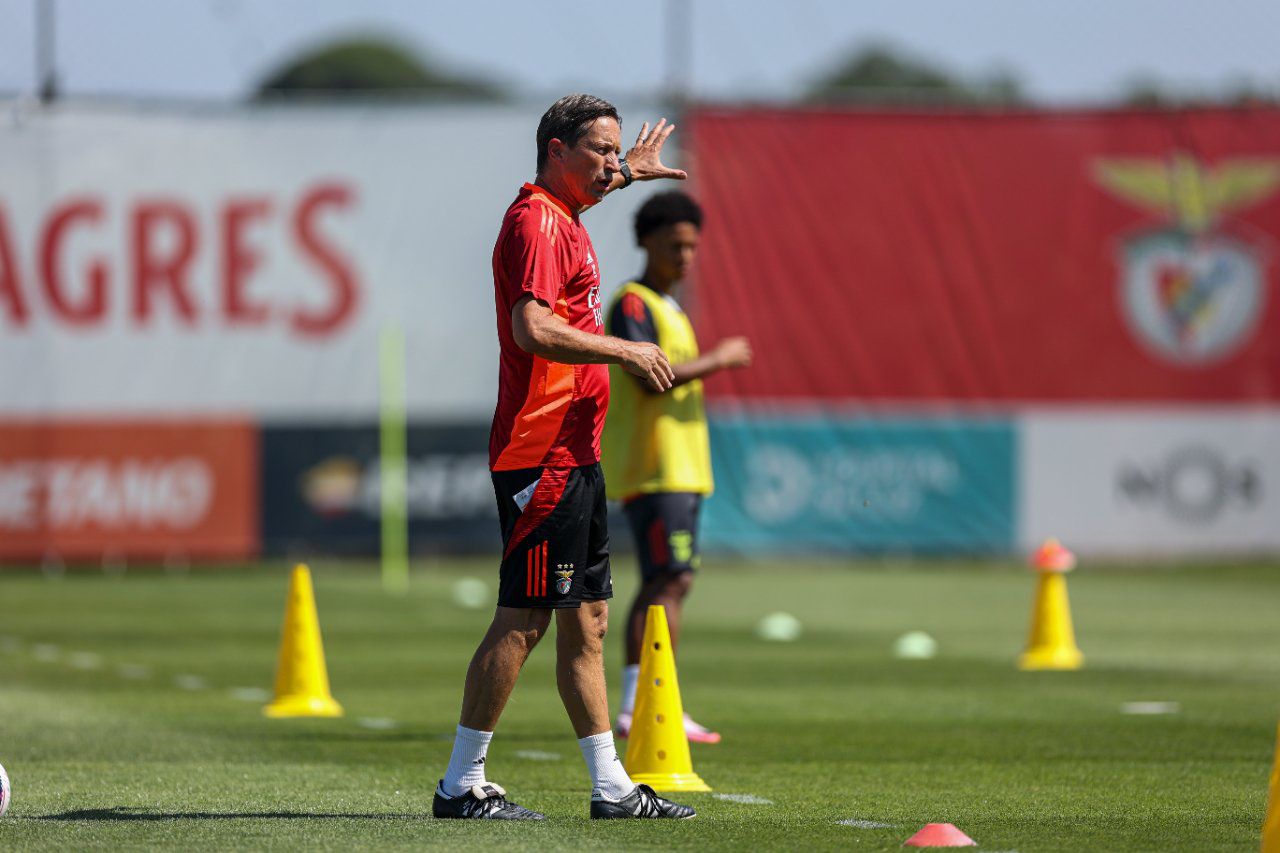 Depois dos habituais testes físicos e exames médicos realizados no dia anterior, Roger Schmidt já pôde trabalhar com os seus 30 jogadores no relvado, com bola, mas com foco na preparação física.