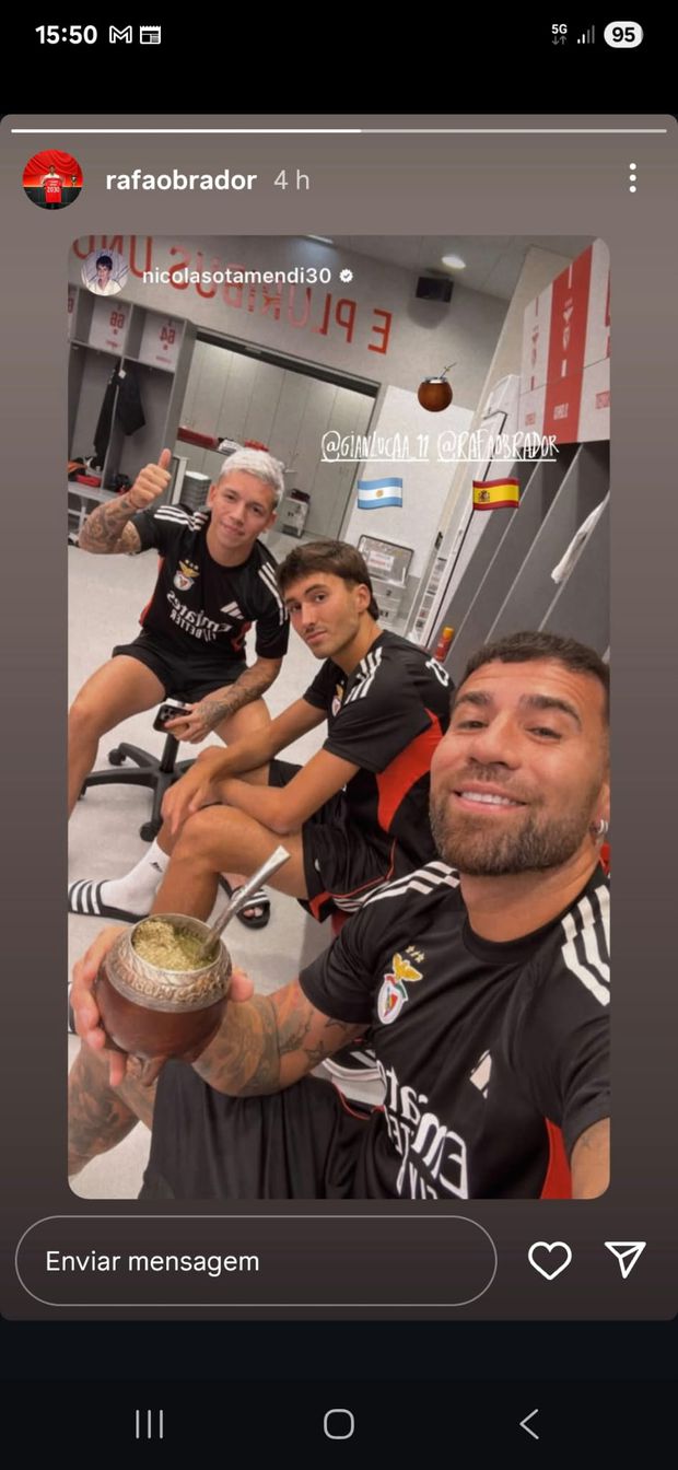 Obrador patilhou nas redes sociais uma imagem na qual aparece ao lado dos argentinos Prestianni e Otamendi. A continuidade de Otamendi, central e capitão do Benfica, também é importante para a integração dos que chegam esta época. Otamendi, de 37 anos, renovou por uma temporada.