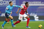 16'- Domingos Quina remata de longe, tenta surpreender Trubin e a bola não passa muito longe do poste.