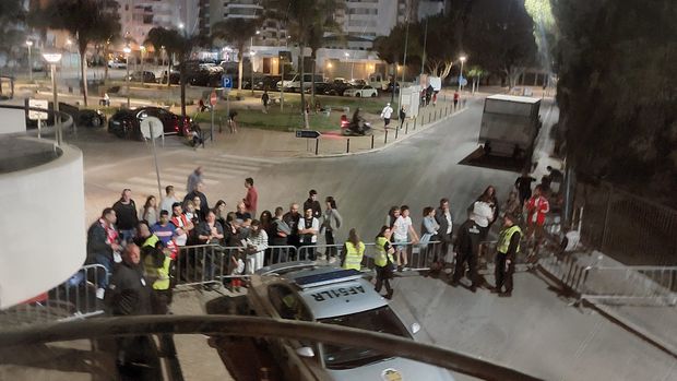 Depois dos ânimos muito exaltados após o término do jogo, ações que mereceram repreensão de Roger Schmidt na 'flash interview' e também na conferência de imprensa, a saída do autocarro do Benfica do Estádio São Luís, em Faro, foi pacífica.