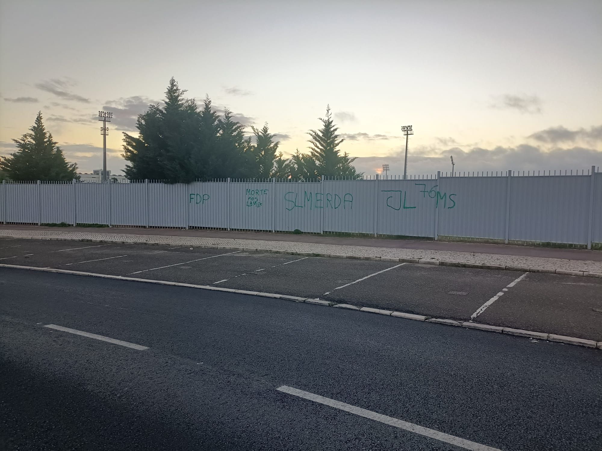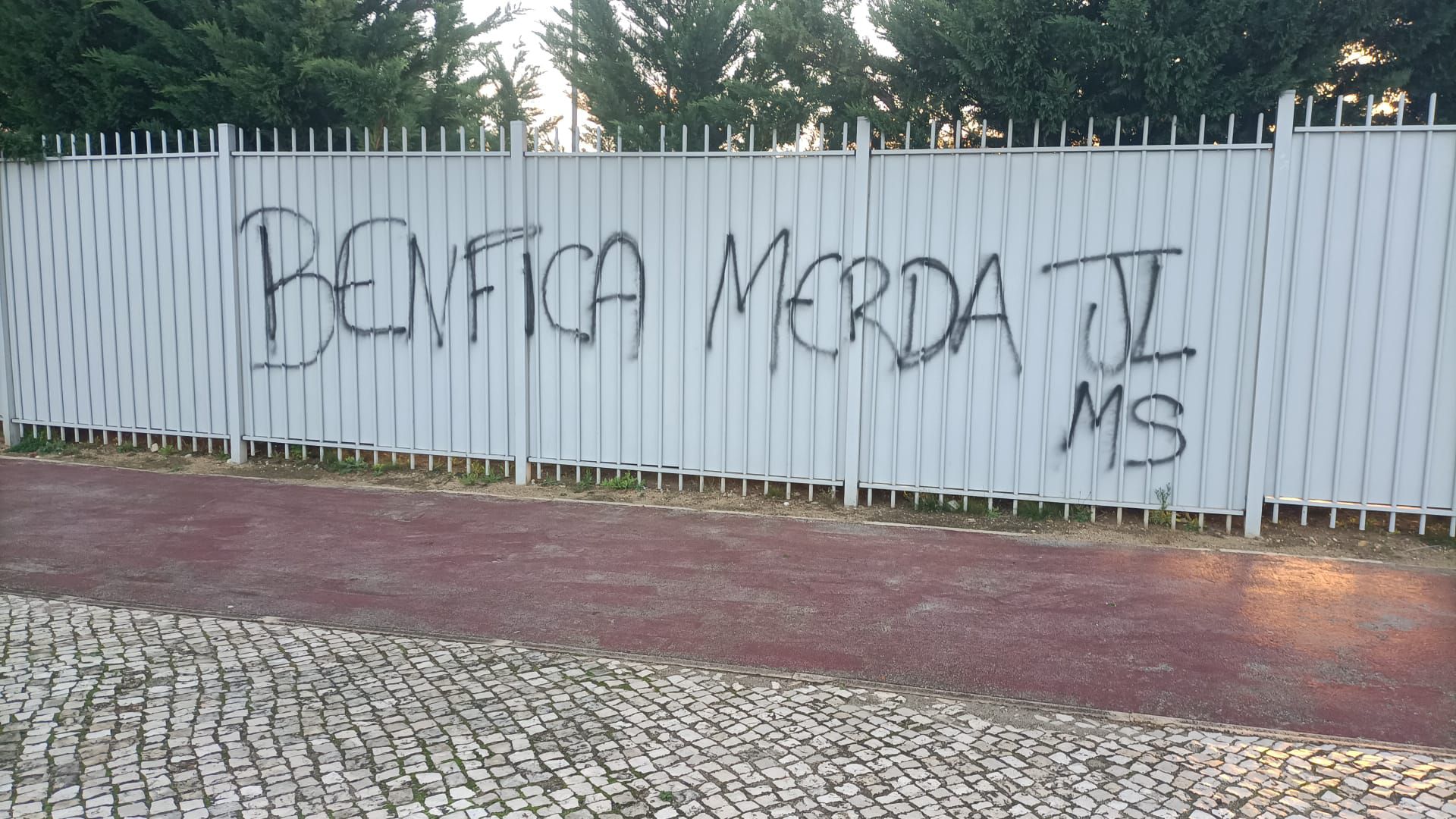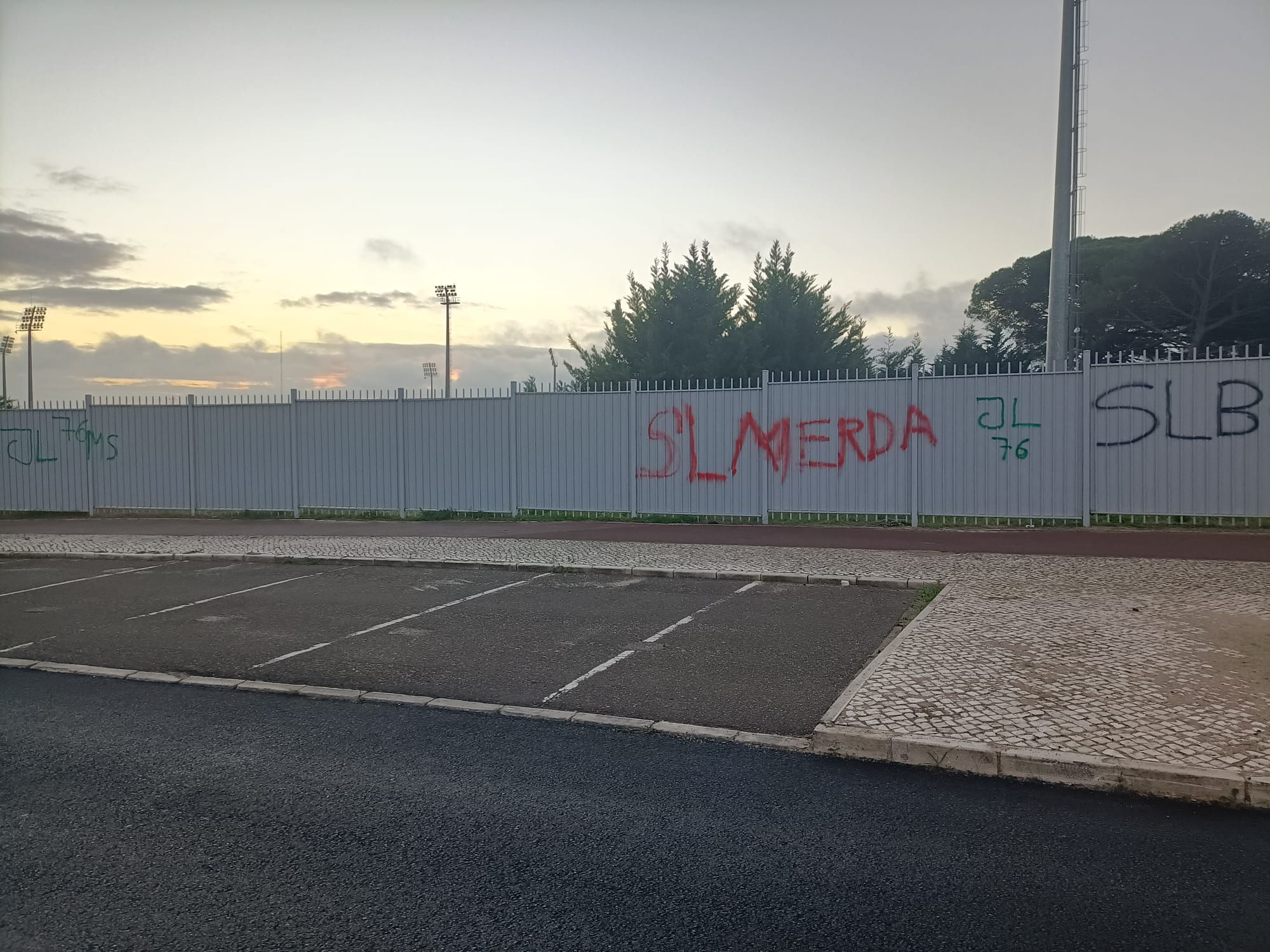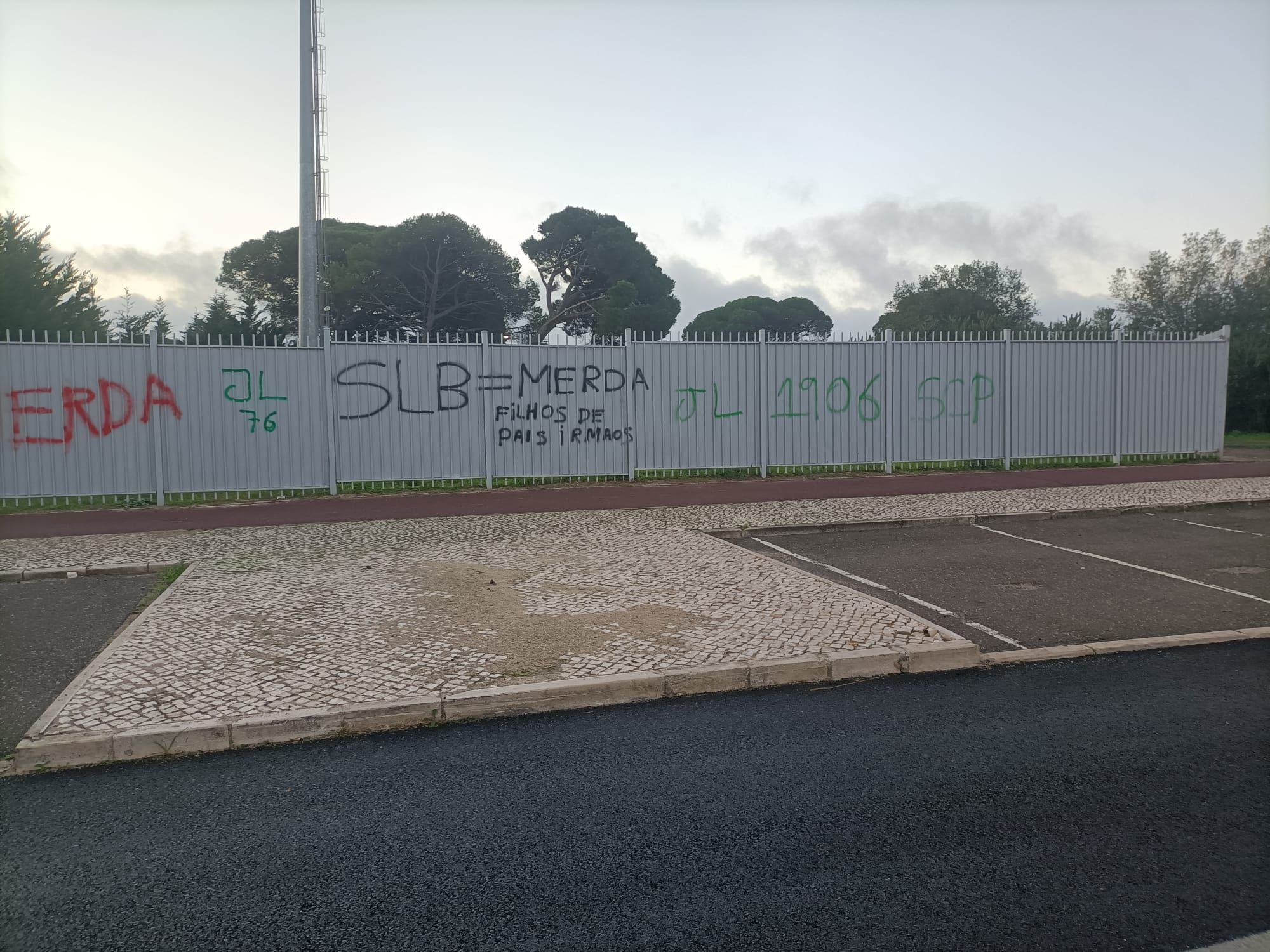 A vedação do centro de estágios do Benfica, no Seixal, foi pintada com insultos ao clube da Luz e com referências a uma das claques do Sporting, no caso a Juventude Leonina, na última madrugada.