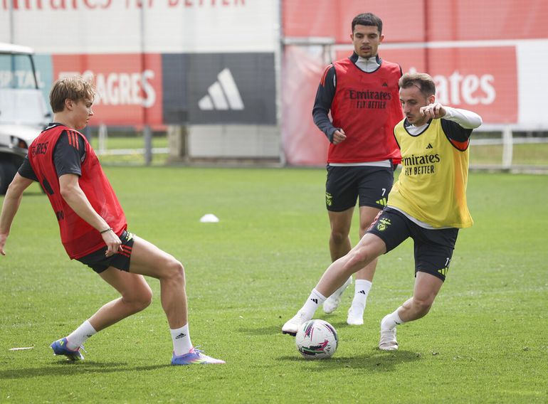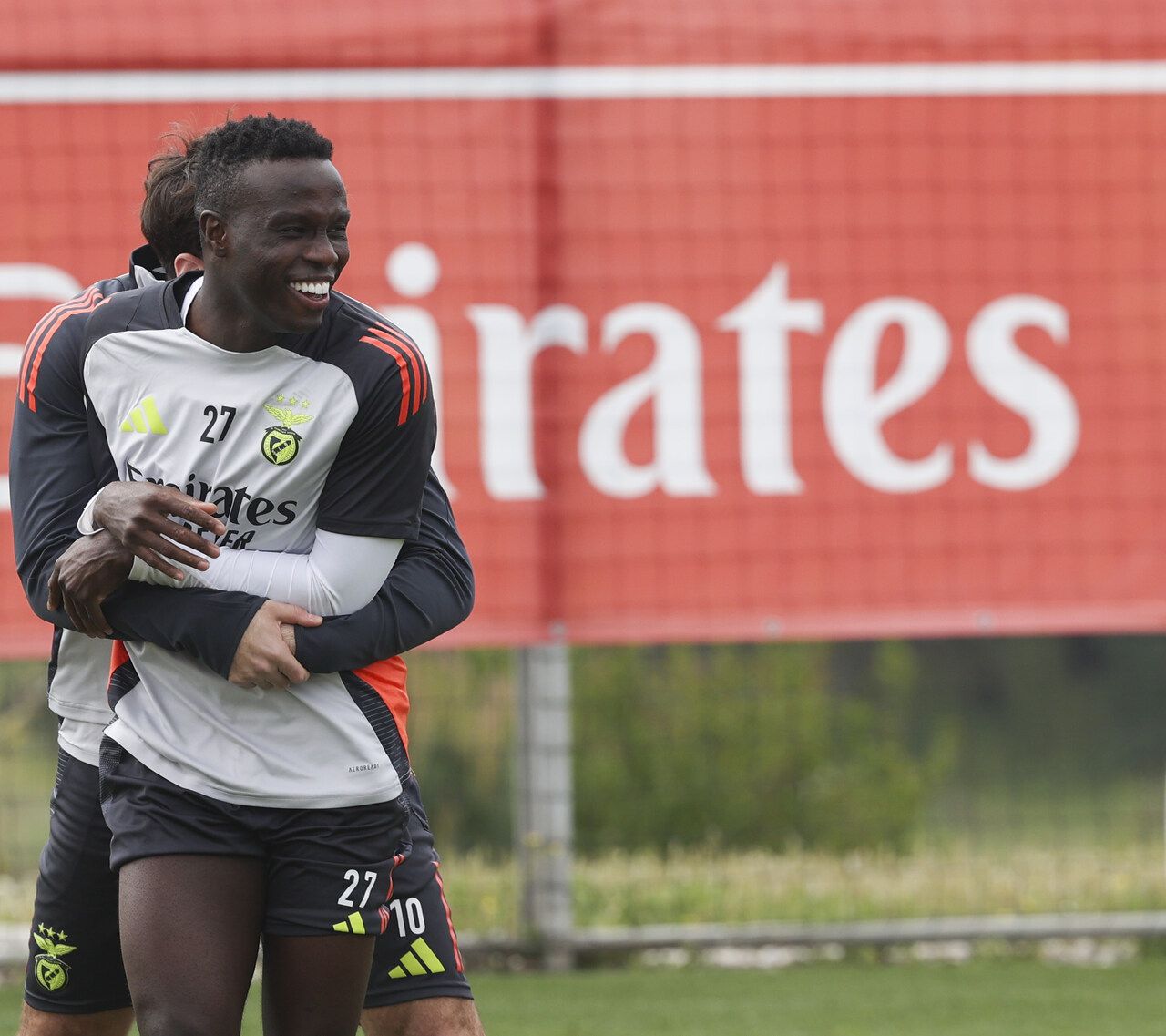 Benfica treina a sorrir e com extremo em foco (fotos)