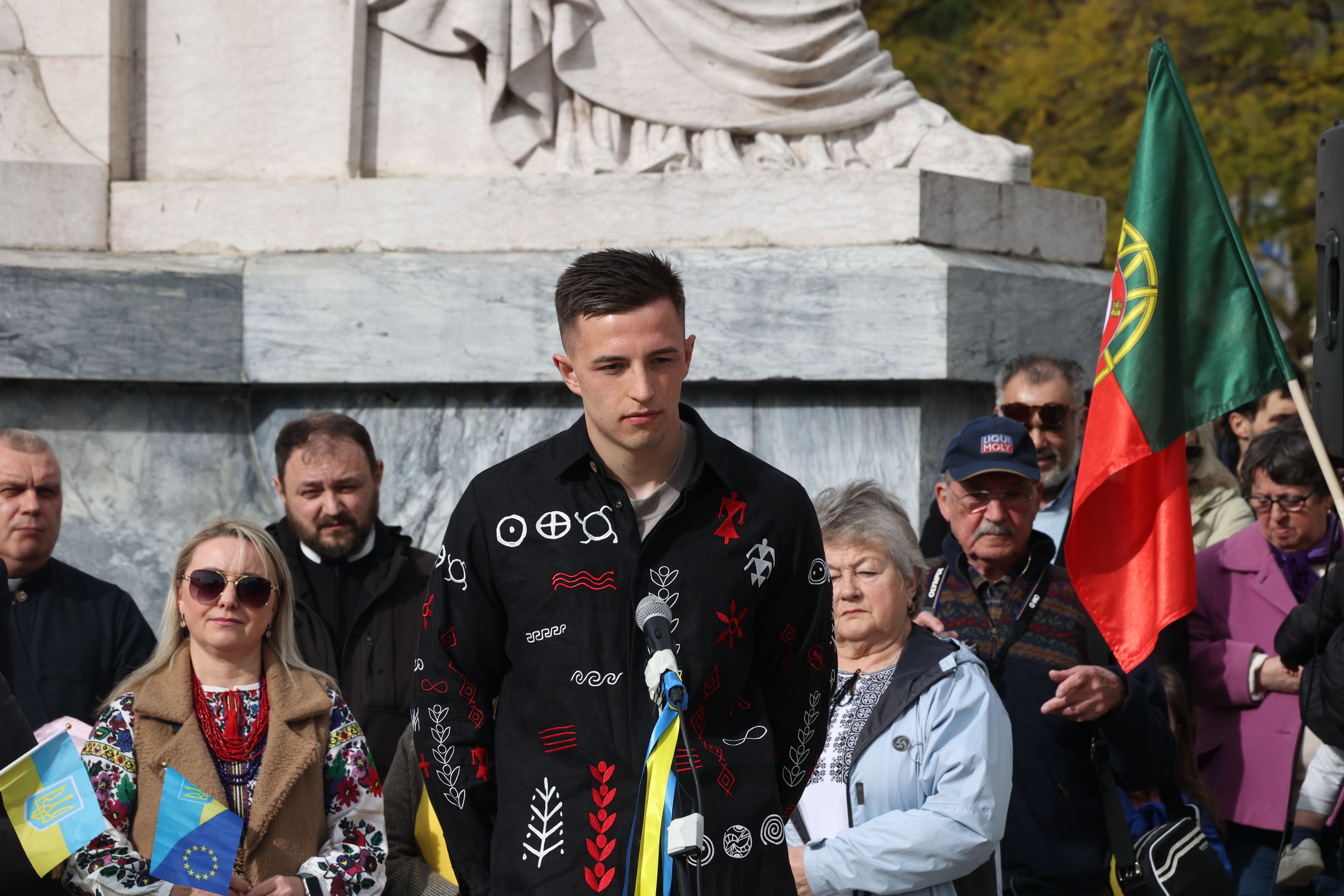 O guardião ucraniano discursou para as várias pessoas que se encontravam na Praça Dom Pedro IV.