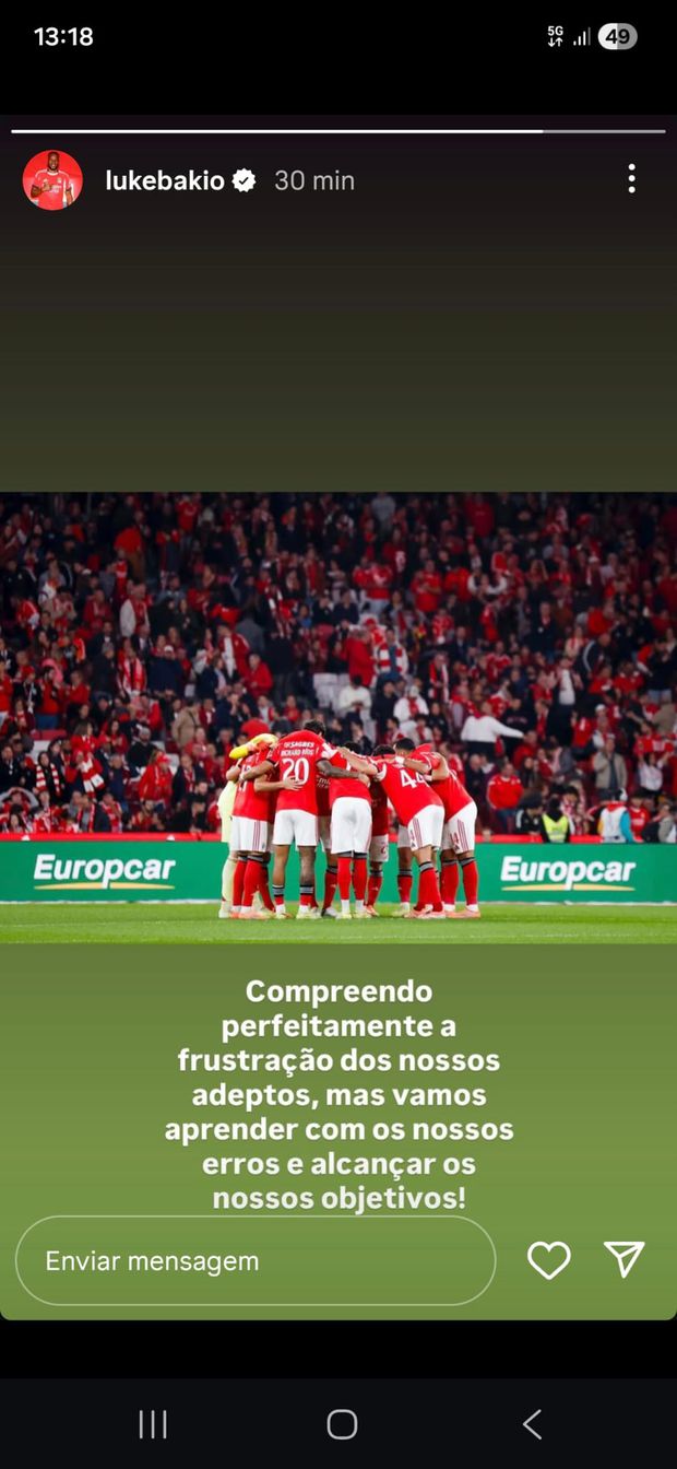 Lukebakio, extrema belga das águias, partilhou uma storie no Instagram na qual deixa uma mensagem a pedir confiança aos adeptos para o futuro.