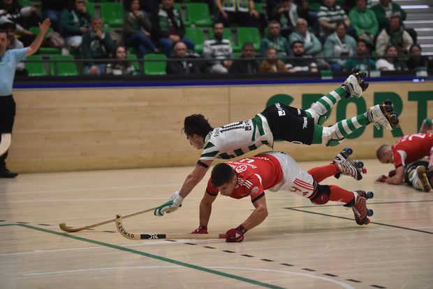 O Sporting começou o duelo a tentar rentabilizar o ascendente motivacional do empate e exibição convincentes no último domingo no pavilhão da Luz – e encostou o Benfica às cordas mediante trocas de bola rápidas culminadas por remates fáceis e espontâneos disferidos de toda a meia pista encarnada. E por isso não surpreendeu o golo madrugador dos verdes e brancos – foi mesmo corolário desse domínio, marcado aos três minutos por Rafael Bessa a coroar com um tiro cruzado a assistência de Danilo Rampulla, no seguimento de outra jogada rapidíssima.