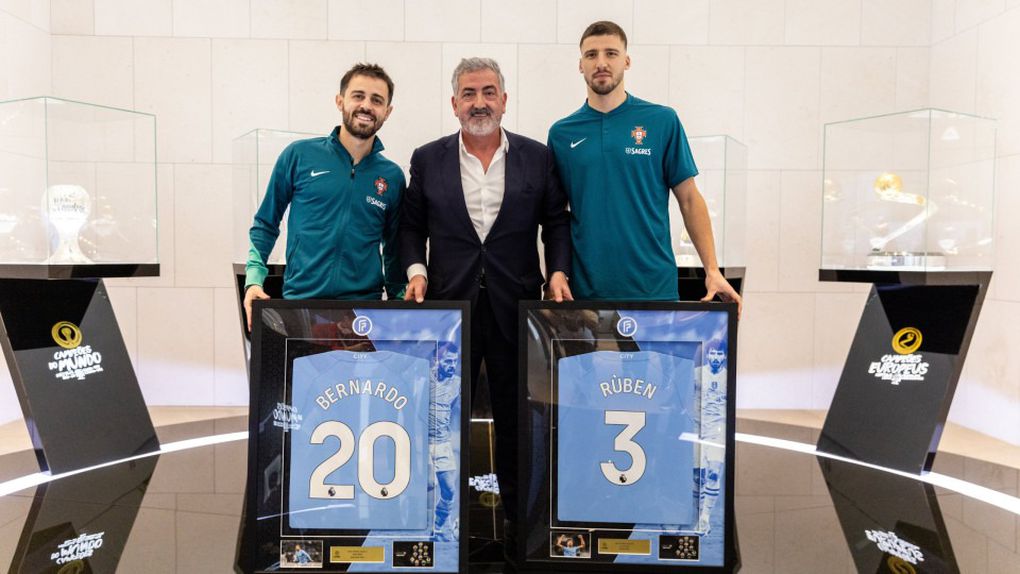 Os jogadores do Manchester City receberam, das mãos de Joaquim Evangelista, presidente do Sindicato dos Jogadores e membro da FIFPro, réplicas das camisolas que usam nos citizens, emolduradas num quadro.