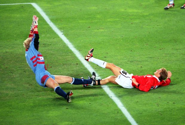 - Podemos voltar ao momento em que o Sheringham marcou o golo do empate, em que podes ver que os jogadores do Bayern estavam incrédulos... não podiam acreditar no que tinha acontecido. Ver o Matthaus no banco, completamente surpreendido. Na altura olharam para eles e pensaram, não queremos ir para o tempo extra, queremos continuar neste ritmo e acabar com eles?