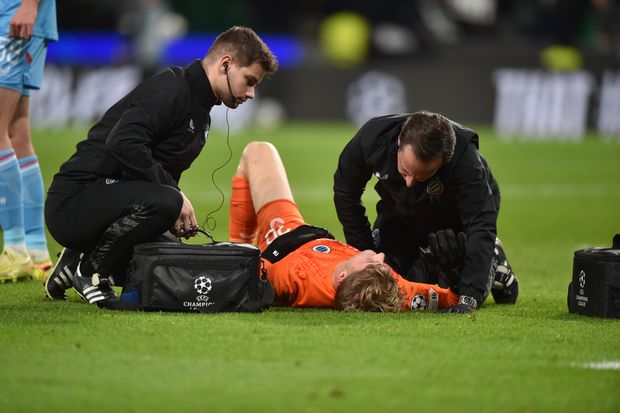 Jackers foi prontamente assistido, o árbitro deu por terminado o lance após o choque e o guardião saiu de maca - Foto: Miguel Nunes