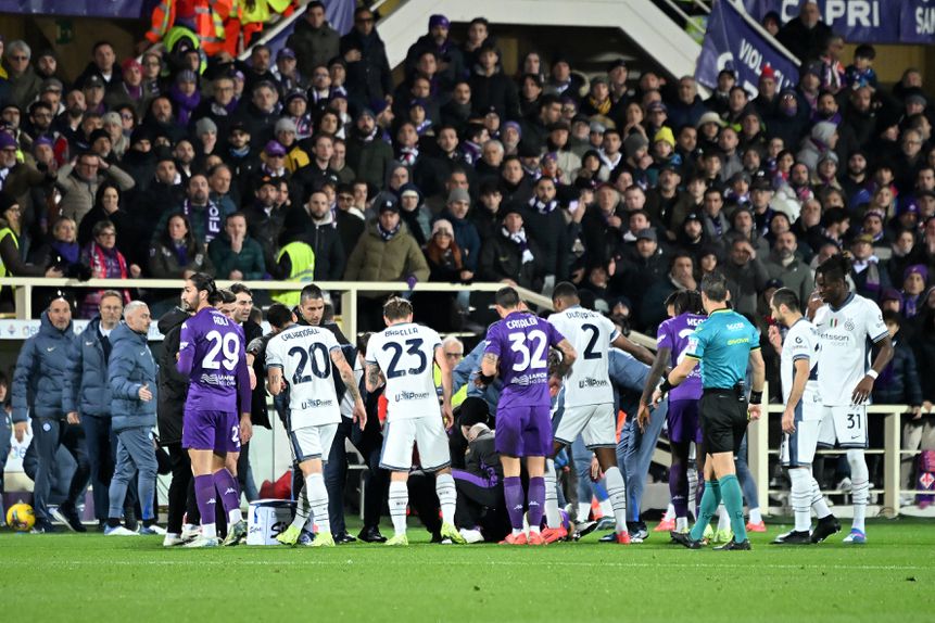 Bove colapsou na 1.ª parte do encontro entre Fiorentina e Inter deste domingo, levando à suspensão imediata do encontro, enquanto vários jogadores choravam quando o colega estava no chão.