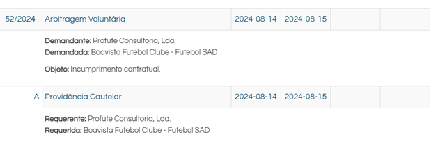 A Profute, empresa de agenciamento propriedade de Paulo Gonçalves, antigo assessor jurídico do Benfica e também antigo dirigente do Boavista, apresentou queixa no Tribunal Arbitral do Desporto (TAD), com a respetiva apresentação de providência cautelar, contra a SAD axadrezada.