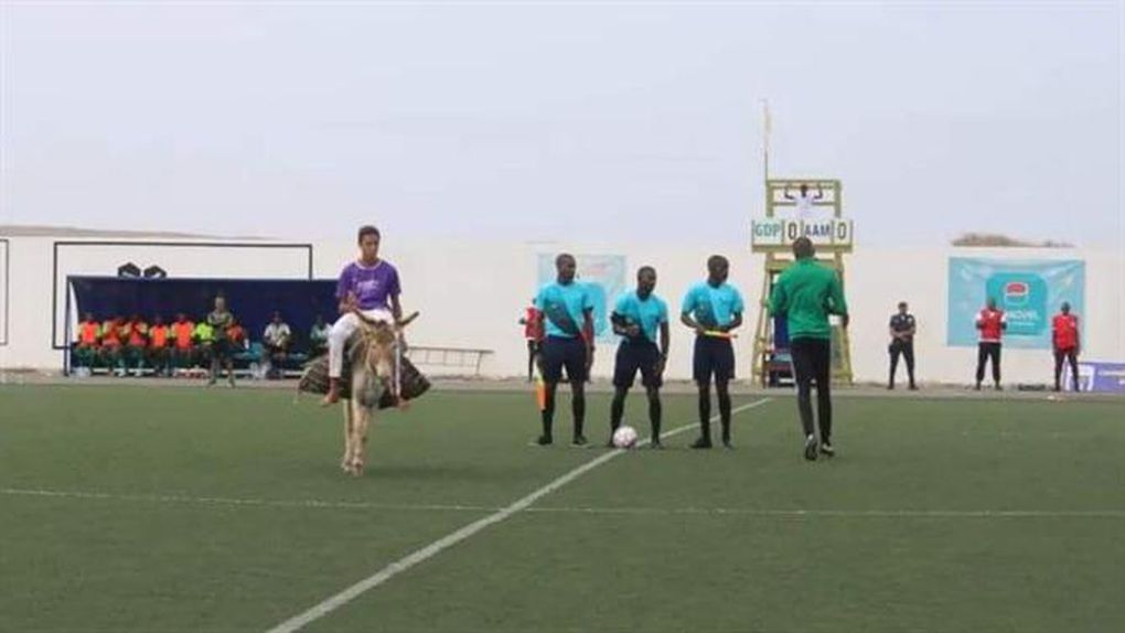 Num momento verdadeiramente insólito, a bola para que se desse início ao jogo acabou por ser entregue ao árbitro por um jovem montado em cima… de um burro.