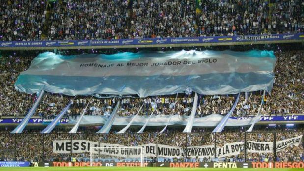 Bombonera ao rubro em homenagem a Messi