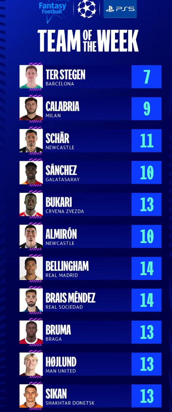 Equipa da semana da 'Fantasy' da Liga dos Campeões (Foto Liga dos Campeões)
