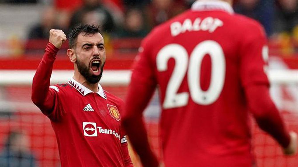 Bruno Fernandes aproveitou uma falha do guarda-redes do Aston Villa, o argentino Emiliano Martinez, para colocar o Manchester United na frente do marcador.