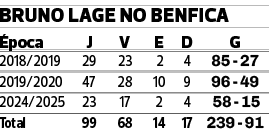 Bruno Lage chega hoje a um número redondo como treinador do Benfica: 100 jogos. A saga começou há pouco mais de seis anos quando, a 6 de janeiro de 2019, substituindo Rui Vitória, os encarnados bateram o Rio Ave por 4-2, em jogo da jornada 16 da Liga.