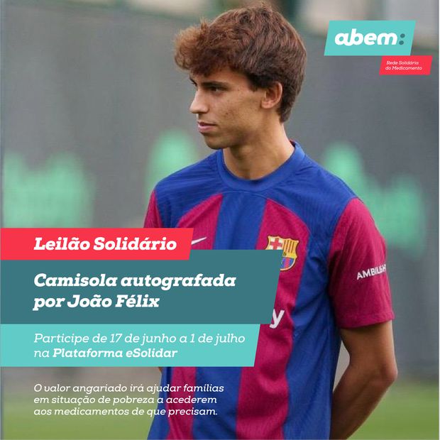 João Félix, avançado que se encontra ao serviço de Portugal no Euro 2024, juntou-se ao Programa abem: Rede Solidária do Medicamento, ao doar uma camisola oficial do Barcelona autografada, que estará em leilão a partir desta segunda feira, com o intuito de apoiar famílias em situação de pobreza no acesso a medicamentos.