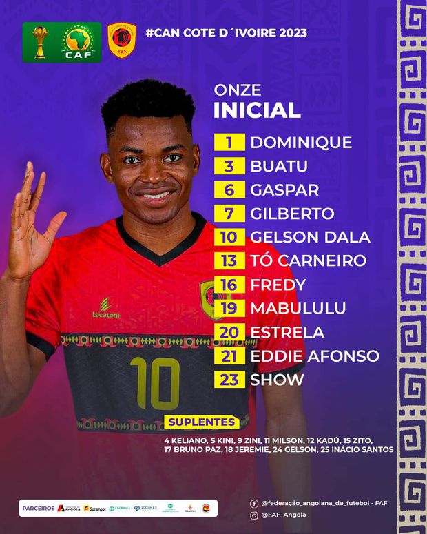46' - Substituição de Angola: Entra Zini; Sai Estrela