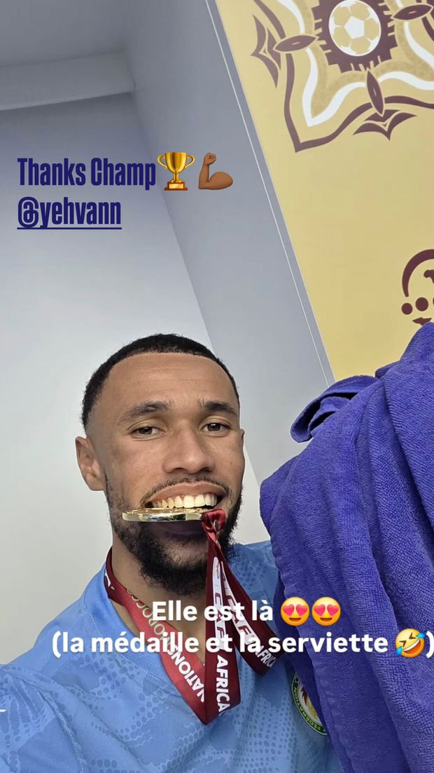 No final, já no balneário, Mendy destacou Diouf e publicou uma foto do companheiro de equipa com a medalha... e a toalha.