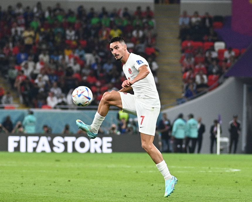 Stephen Eustáquio, médio do FC Porto que foi promovido a capitão da seleção canadiana, saiu aos 90+4, rendido por Samuel Piette.
