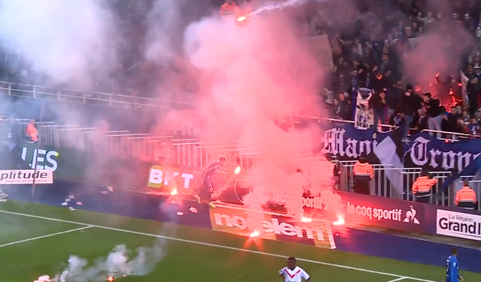 O duelo entre Troyes e Valenciennes não chegou ao fim, depois de o árbitro ter interrompido em definitivo o jogo perto dos 90’ devido aos protestos dos adeptos da equipa da casa, que atiraram engenhos pirotécnicos para dentro das quatro linhas.