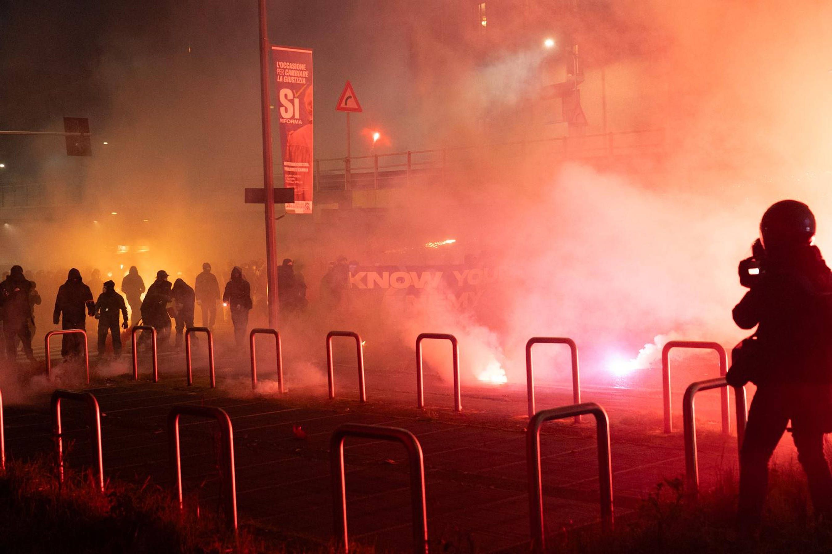 Noite de sábado foi de alta tensão nas ruas da capital da Lombardia