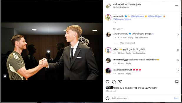 O ex-Manchester United deixou um pequeno comentário a dar os parabéns numa publicação onde o seu compatriota cumprimentava Xabi Alonso, o novo treinador. «Parabéns, amigo!», escreveu. Foram muitos os adeptos espanhóis que pediram ao jogador das águias para seguir o ex-Juventus.