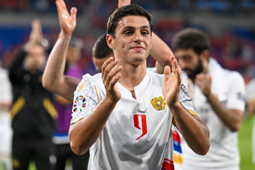 Artur Serobyan cumprimenta o público após jogo realizado pela seleção nacional da Arménia. Foto: Pro Sports Press/Imago. - Foto: IMAGO