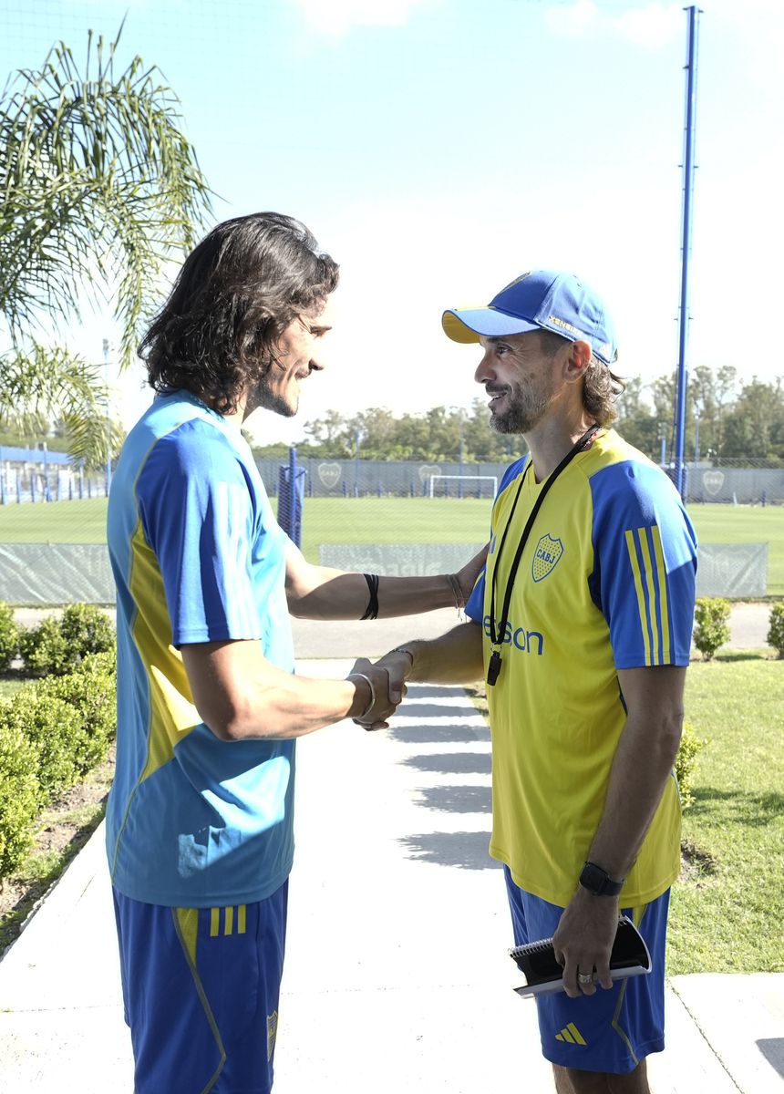 Cavani cumprimenta Diego Martínez (X/Boca Juniors)